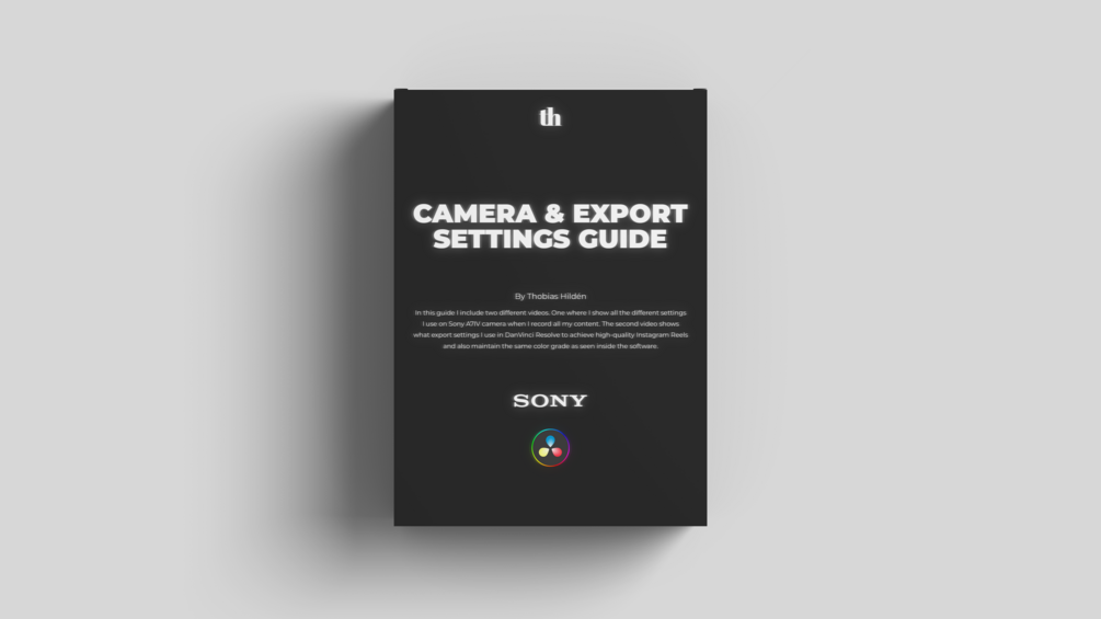 In this guide I include two different videos. One where I show all the different settings I use on Sony A7IV camera when I record all my content. The second video shows what export settings I use in DanVinci Resolve to achieve high-quality Instagram Reels and also maintain the same color grade as seen inside the software.